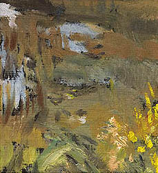 | OTHER IMAGERY: At right is part of an abstract diagram I use in presentations to explain how I was thinking about social influences and interactions when planning my project. The full image is presented below (with a bit more explanation), along with a few examples of the kinds of non-painting imagery that are included in the Powerpoint presentations. These various images add visual variety while helping to fill out a sense of the project and the creative process in general The second image at right is a detail of the painting Bass Harbor Marsh (see paintings displayed on the main Artwork page). My painting technique can be very loose up close, revealing my fondness for Abstract Expressionism. But step back, and the landscape imagery resolves into something that can look almost photographic. The participation of both representational and abstract concerns, and the tension between them, is important to my work and helps keep the small paintings alive and breathing. Most of the images below show my interest in pattern and abstraction. People attending my presentations tend enjoy this imagery. The more sophisticated artists are pleased to find out there's more going on than landscape painting. The non-artists seem to enjoy having a different way of looking at things. We live in a highly visual culture, and yet many people have never thought about exploring visual consciousness or ways of seeing. MORE IMAGES FOLLOW: |